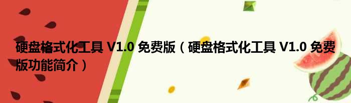 硬盘格式化工具 V1.0 免费版(硬盘格式化工具 V1.0 免费版功能简介)