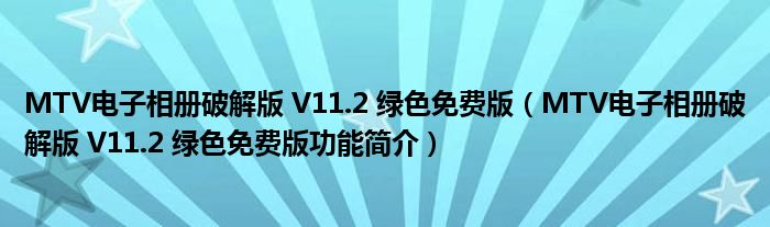 导读 大家好,关于MTV电子相册破解版 V11 2 绿色免费版,MTV电子相册破解版 V11 2 绿色免费版功能简介这个很多人还不知道,小勒来为大家解答以