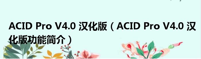 ACID Pro V4.0 汉化版(ACID Pro V4.0 汉化版功能简介)
