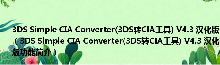导读 大家好,关于3DS Simple CIA Converter(3DS转CIA工具) V4 3 汉化版,3DS Simple CIA Converter(3DS转CIA工具) V4 3 汉化版功能简