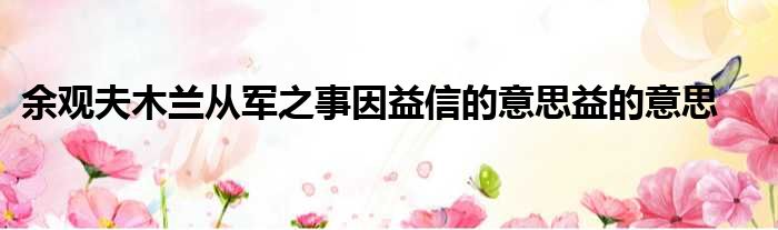 导读 大家好,今天小六子来为大家解答以下的问题,关于余观夫木兰从军之事因益信的意思益的意思这个很多人还不知道,现在让我们一起来看看吧!1、