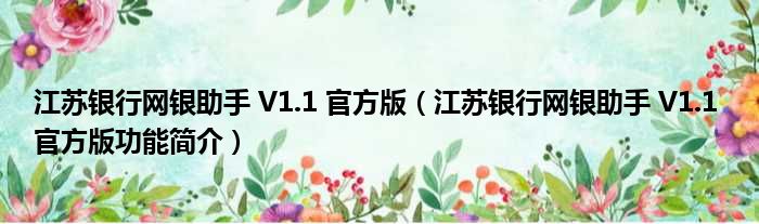 江苏银行网银助手 V1.1 官方版(江苏银行网银助手 V1.1 官方版功能简介)
