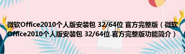 微软Office2010个人版安装包 32/64位 官方完整版(微软Office2010个人版安装包 32/64位 官方完整版功能简介)