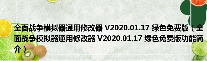 导读 大家好,关于全面战争模拟器通用修改器 V2020 01 17 绿色免费版,全面战争模拟器通用修改器 V2020 01 17 绿色免费版功能简介这个很多人