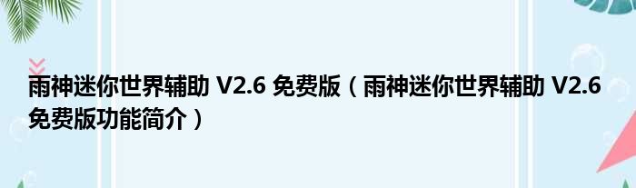 雨神迷你世界辅助 V2.6 免费版(雨神迷你世界辅助 V2.6 免费版功能简介)