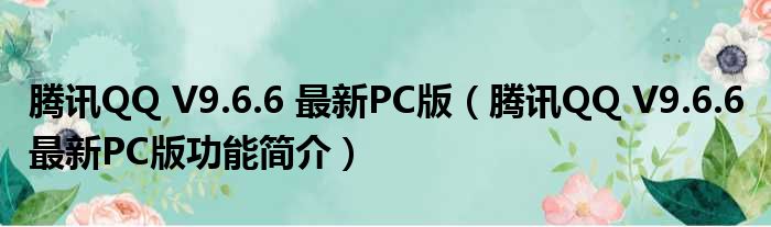 腾讯QQ V9.6.6 最新PC版(腾讯QQ V9.6.6 最新PC版功能简介)