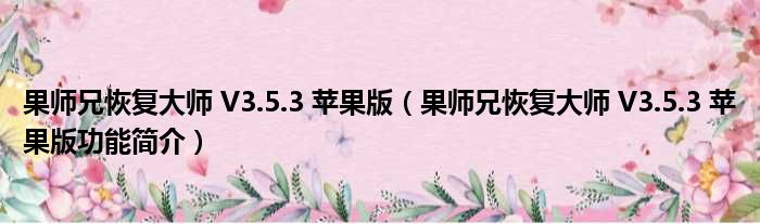果师兄恢复大师 V3.5.3 苹果版(果师兄恢复大师 V3.5.3 苹果版功能简介)