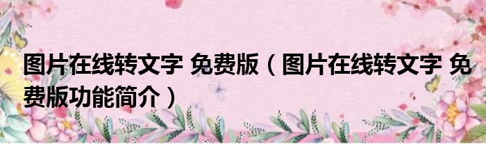 图片在线转文字 免费版(图片在线转文字 免费版功能简介)