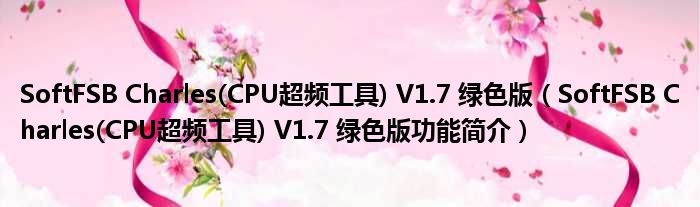 SoftFSB Charles(CPU超频工具) V1.7 绿色版(SoftFSB Charles(CPU超频工具) V1.7 绿色版功能简介)