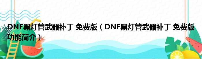 DNF黑灯管武器补丁 免费版(DNF黑灯管武器补丁 免费版功能简介)