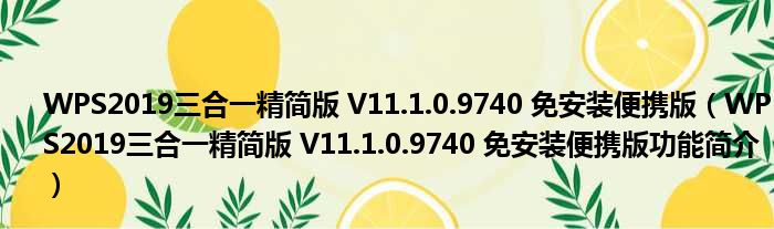 WPS2019三合一精简版 V11.1.0.9740 免安装便携版(WPS2019三合一精简版 V11.1.0.9740 免安装便携版功能简介)
