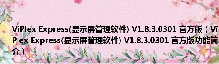 ViPlex Express(显示屏管理软件) V1.8.3.0301 官方版(ViPlex Express(显示屏管理软件) V1.8.3.0301 官方版功能简介)