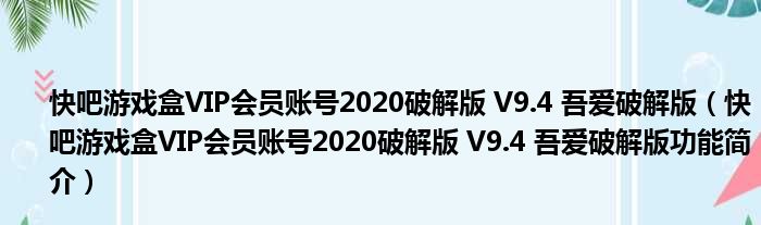 快吧游戏盒VIP会员账号2020破解版 V9.4 吾爱破解版(快吧游戏盒VIP会员账号2020破解版 V9.4 吾爱破解版功能简介)
