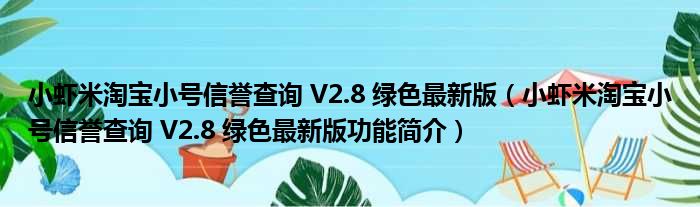 导读 大家好,关于小虾米淘宝小号信誉查询 V2 8 绿色最新版,小虾米淘宝小号信誉查询 V2 8 绿色最新版功能简介这个很多人还不知道,小勒来为大