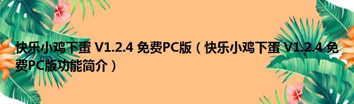 导读 大家好,关于快乐小鸡下蛋 V1 2 4 免费PC版,快乐小鸡下蛋 V1 2 4 免费PC版功能简介这个很多人还不知道,小勒来为大家解答以上的问题,现