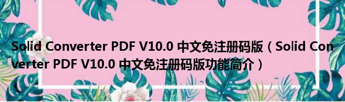 Solid Converter PDF V10.0 中文免注册码版(Solid Converter PDF V10.0 中文免注册码版功能简介)