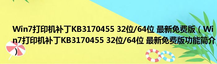 Win7打印机补丁KB3170455 32位/64位 最新免费版(Win7打印机补丁KB3170455 32位/64位 最新免费版功能简介)