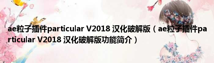 ae粒子插件particular V2018 汉化破解版(ae粒子插件particular V2018 汉化破解版功能简介)