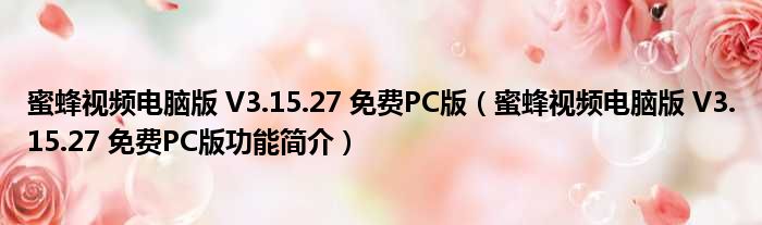蜜蜂视频电脑版 V3.15.27 免费PC版(蜜蜂视频电脑版 V3.15.27 免费PC版功能简介)