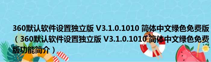 360默认软件设置独立版 V3.1.0.1010 简体中文绿色免费版(360默认软件设置独立版 V3.1.0.1010 简体中文绿色免费版功能简介)