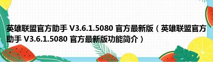 导读 大家好,关于英雄联盟官方助手 V3 6 1 5080 官方最新版,英雄联盟官方助手 V3 6 1 5080 官方最新版功能简介这个很多人还不知道,小勒来为