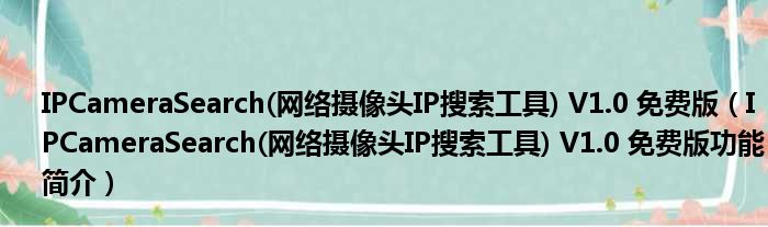 IPCameraSearch(网络摄像头IP搜索工具) V1.0 免费版(IPCameraSearch(网络摄像头IP搜索工具) V1.0 免费版功能简介)