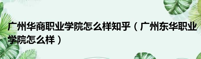 广州华商职业学院怎么样知乎(广州东华职业学院怎么样)