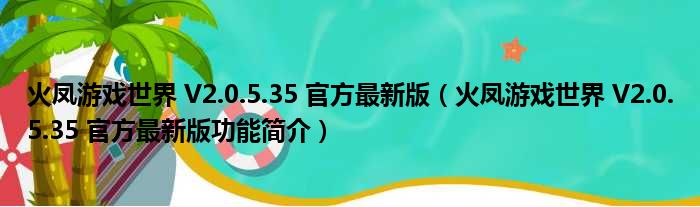 火凤游戏世界 V2.0.5.35 官方最新版(火凤游戏世界 V2.0.5.35 官方最新版功能简介)