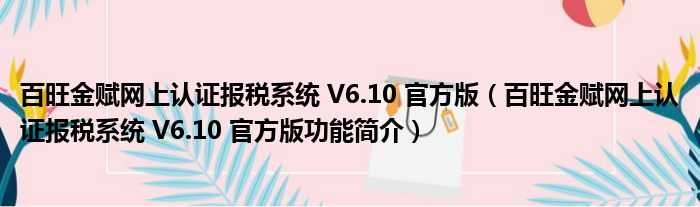 百旺金赋网上认证报税系统 V6.10 官方版(百旺金赋网上认证报税系统 V6.10 官方版功能简介)