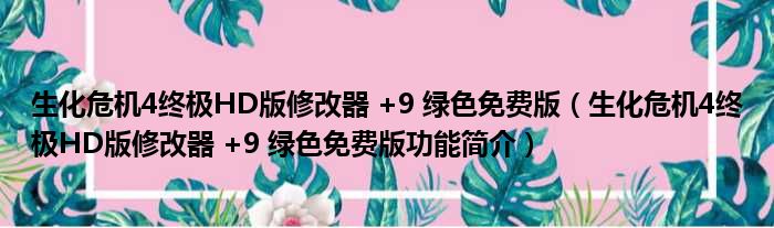 导读 大家好,关于生化危机4终极HD版修改器 +9 绿色免费版,生化危机4终极HD版修改器 +9 绿色免费版功能简介这个很多人还不知道,小勒来为大家