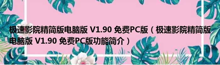 极速影院精简版电脑版 V1.90 免费PC版(极速影院精简版电脑版 V1.90 免费PC版功能简介)