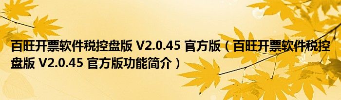百旺开票软件税控盘版 V2.0.45 官方版(百旺开票软件税控盘版 V2.0.45 官方版功能简介)