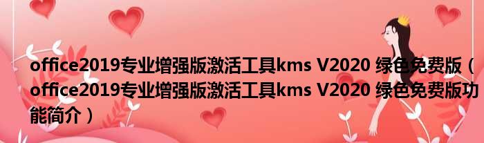 office2019专业增强版激活工具kms V2020 绿色免费版(office2019专业增强版激活工具kms V2020 绿色免费版功能简介)