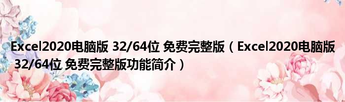 Excel2020电脑版 32/64位 免费完整版(Excel2020电脑版 32/64位 免费完整版功能简介)