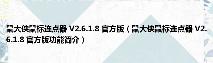 鼠大侠鼠标连点器 V2.6.1.8 官方版(鼠大侠鼠标连点器 V2.6.1.8 官方版功能简介)
