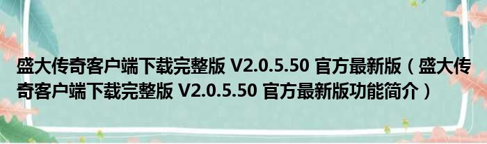 盛大传奇客户端下载完整版 V2.0.5.50 官方最新版(盛大传奇客户端下载完整版 V2.0.5.50 官方最新版功能简介)