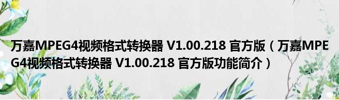 万嘉MPEG4视频格式转换器 V1.00.218 官方版(万嘉MPEG4视频格式转换器 V1.00.218 官方版功能简介)