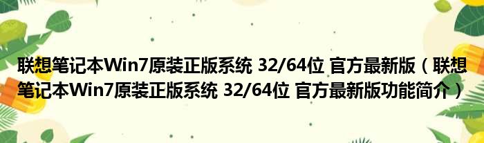 联想笔记本Win7原装正版系统 32/64位 官方最新版(联想笔记本Win7原装正版系统 32/64位 官方最新版功能简介)