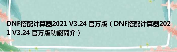 DNF搭配计算器2021 V3.24 官方版(DNF搭配计算器2021 V3.24 官方版功能简介)