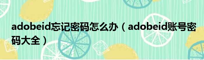 导读 大家好,今天小六子来为大家解答以下的问题,关于adobeid忘记密码怎么办,adobeid账号密码大全这个很多人还不知道,现在让我们一起来看看吧