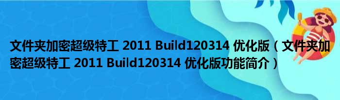 文件夹加密超级特工 2011 Build120314 优化版(文件夹加密超级特工 2011 Build120314 优化版功能简介)