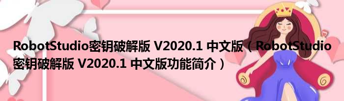 RobotStudio密钥破解版 V2020.1 中文版(RobotStudio密钥破解版 V2020.1 中文版功能简介)
