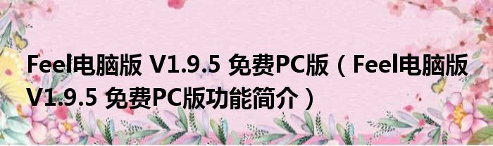 导读 大家好,关于Feel电脑版 V1 9 5 免费PC版,Feel电脑版 V1 9 5 免费PC版功能简介这个很多人还不知道,小勒来为大家解答以上的问题,现在让