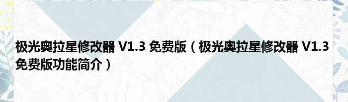 导读 大家好,关于极光奥拉星修改器 V1 3 免费版,极光奥拉星修改器 V1 3 免费版功能简介这个很多人还不知道,小勒来为大家解答以上的问题,现