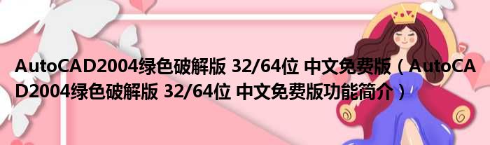 导读 大家好,关于AutoCAD2004绿色破解版 32 64位 中文免费版,AutoCAD2004绿色破解版 32 64位 中文免费版功能简介这个很多人还不知道,小勒来