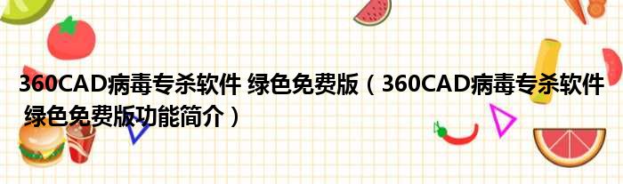 360CAD病毒专杀软件 绿色免费版(360CAD病毒专杀软件 绿色免费版功能简介)