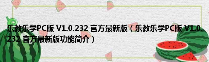 乐教乐学PC版 V1.0.232 官方最新版(乐教乐学PC版 V1.0.232 官方最新版功能简介)