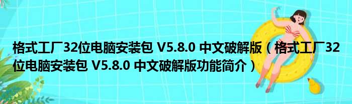 格式工厂32位电脑安装包 V5.8.0 中文破解版(格式工厂32位电脑安装包 V5.8.0 中文破解版功能简介)