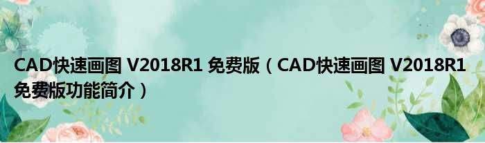 CAD快速画图 V2018R1 免费版(CAD快速画图 V2018R1 免费版功能简介)