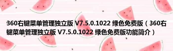 360右键菜单管理独立版 V7.5.0.1022 绿色免费版(360右键菜单管理独立版 V7.5.0.1022 绿色免费版功能简介)